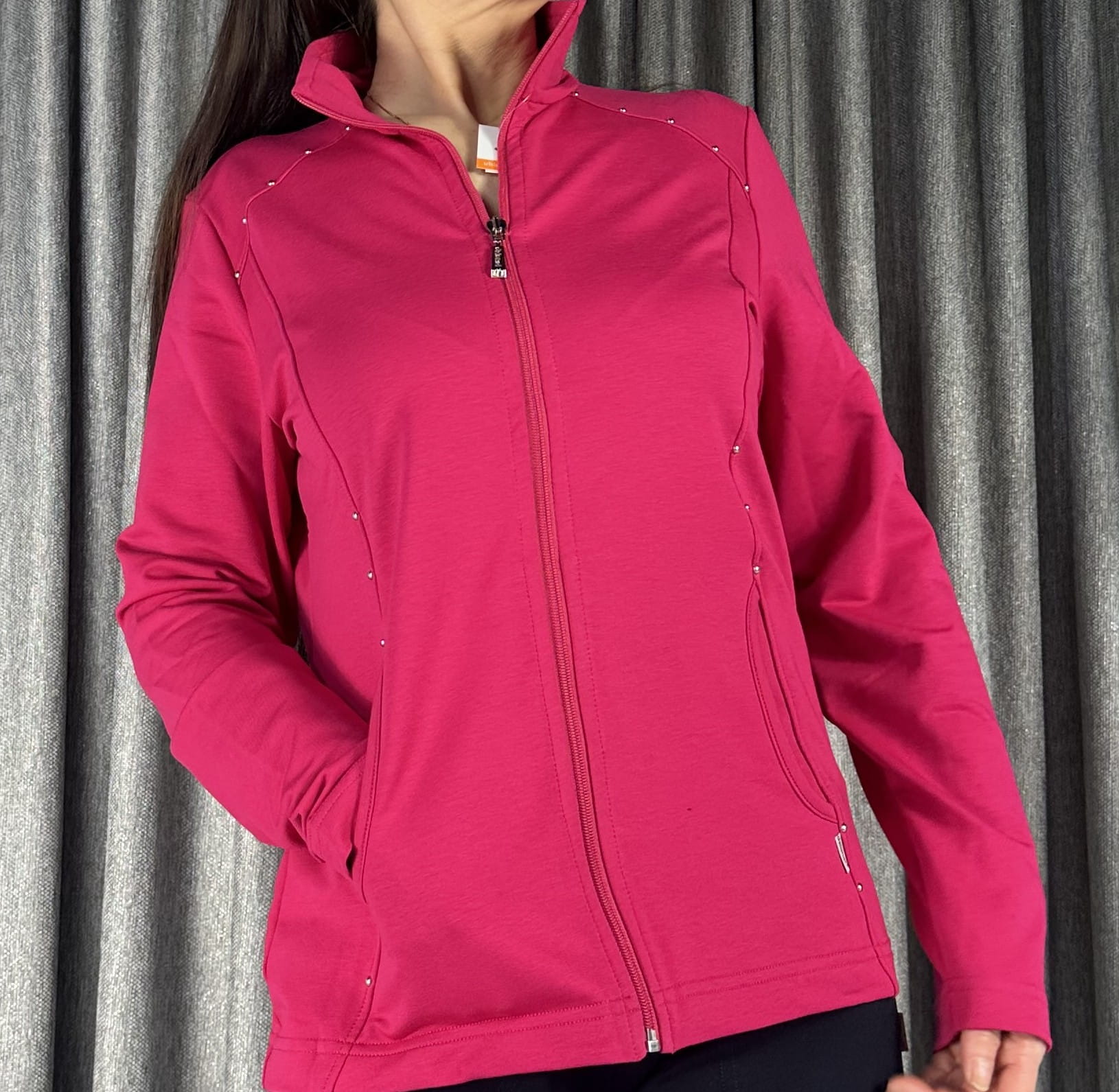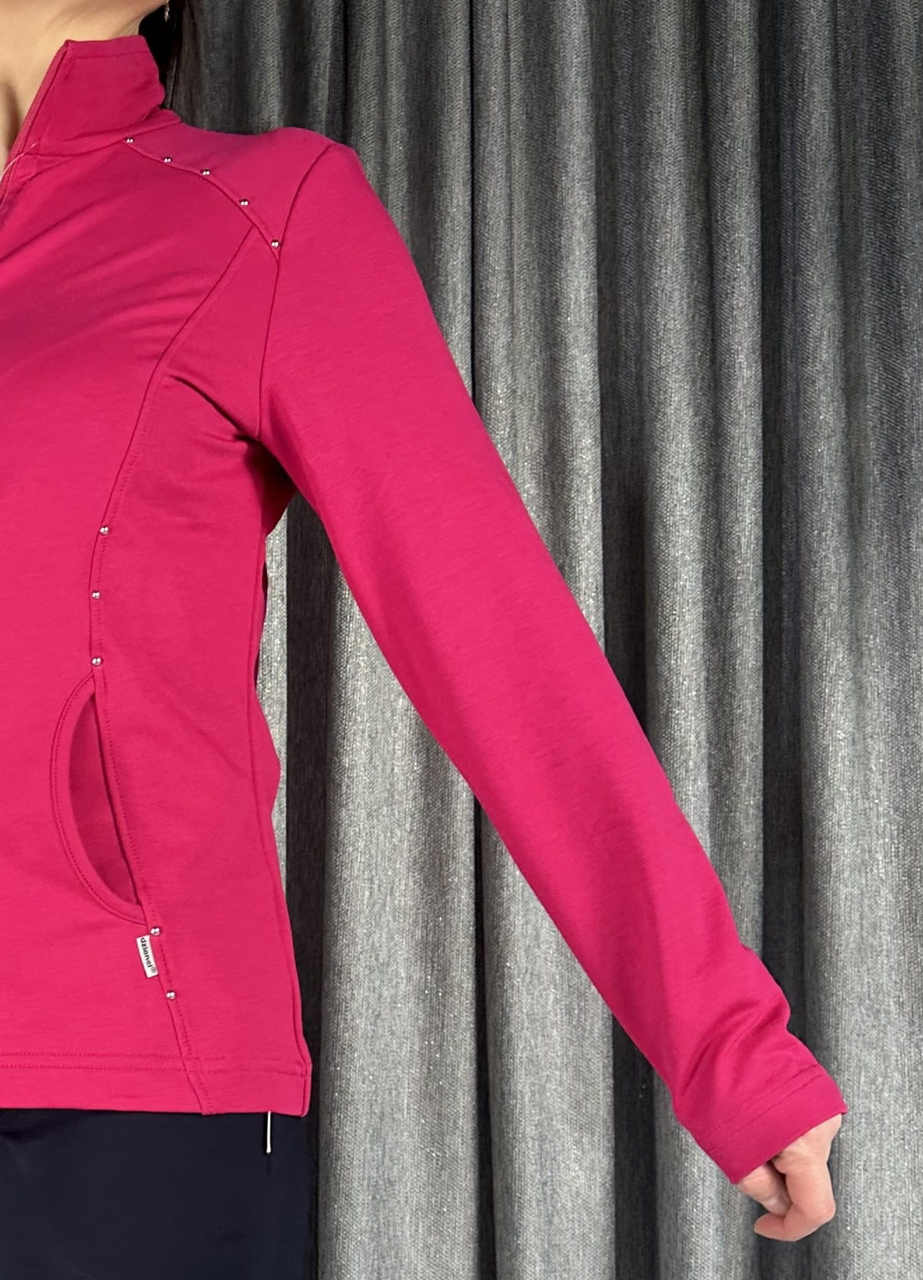 Bluza ze stójką, na zamek, dżety - magenta 365